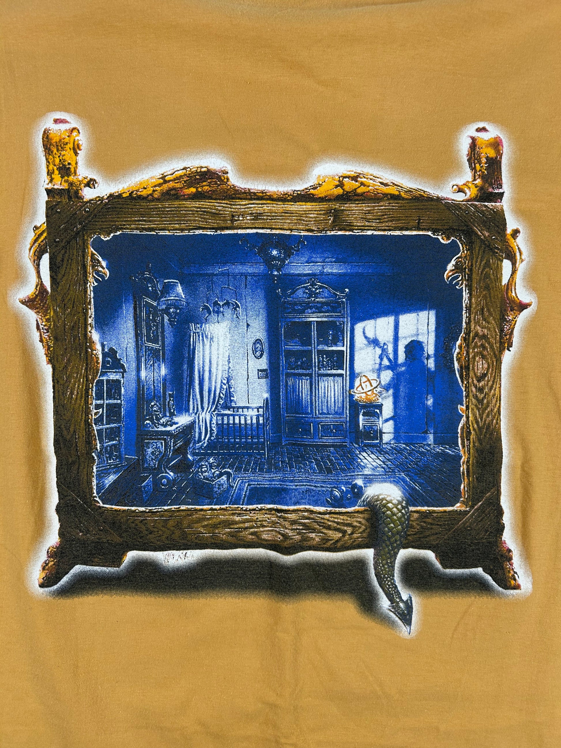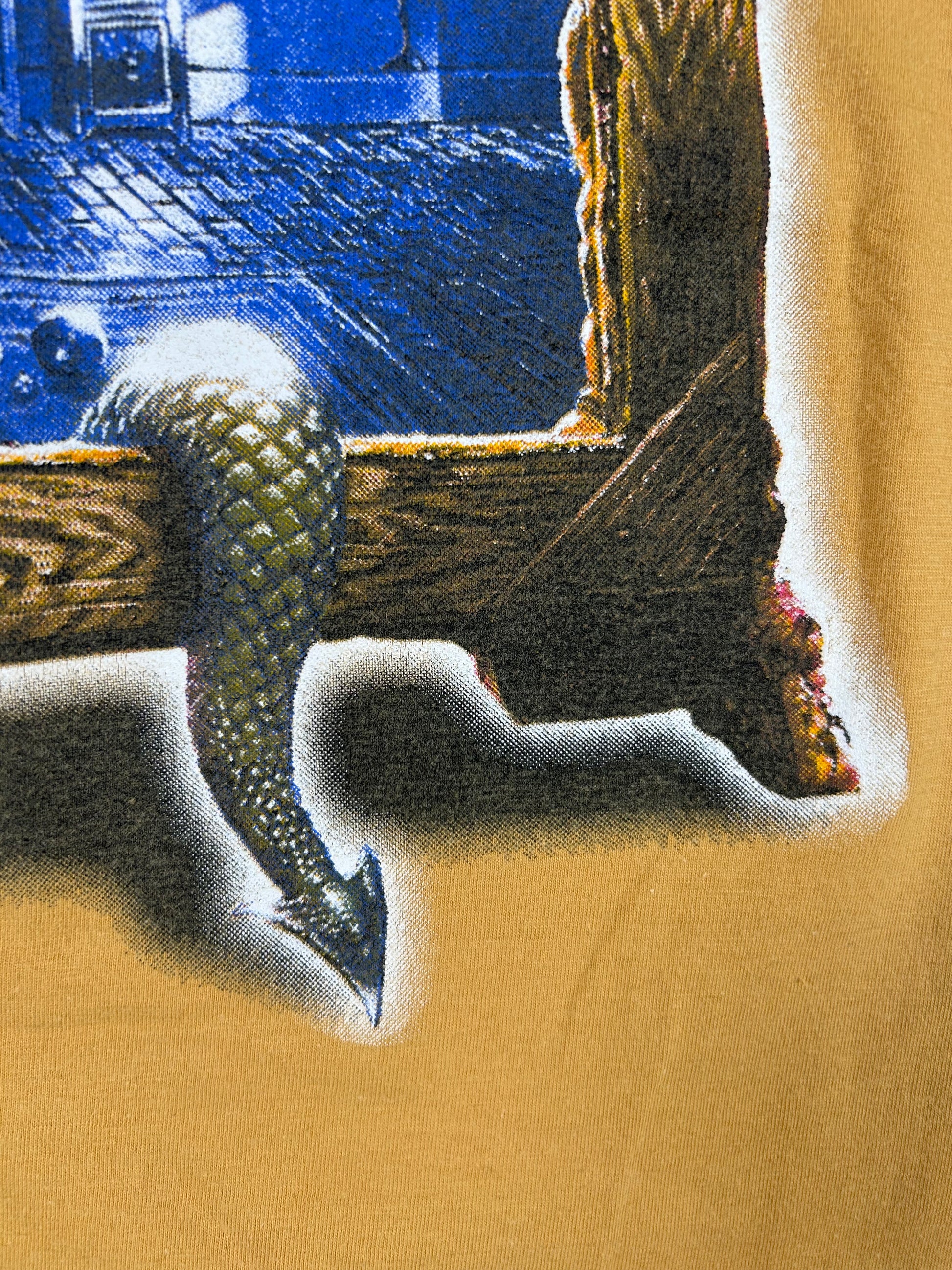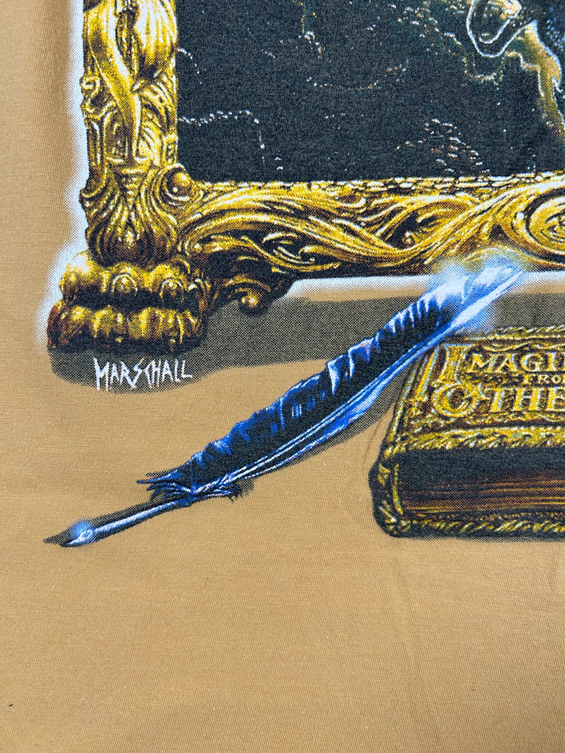 Mid‑’90s tour/album tee from German power‑metal legends Blind Guardian, aligned with their pivotal 1995 album Imaginations from the Other Side (released April 5, 1995). Featuring thematic artwork from the album—fantastical, epic, blending myth and metal—this shirt captures the band’s evolution into their signature sound.